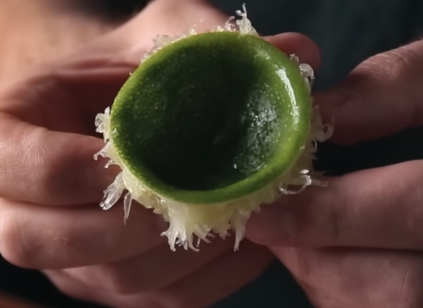 Take the squeezed rind and push through the backside to invert it (see image) then set aside.