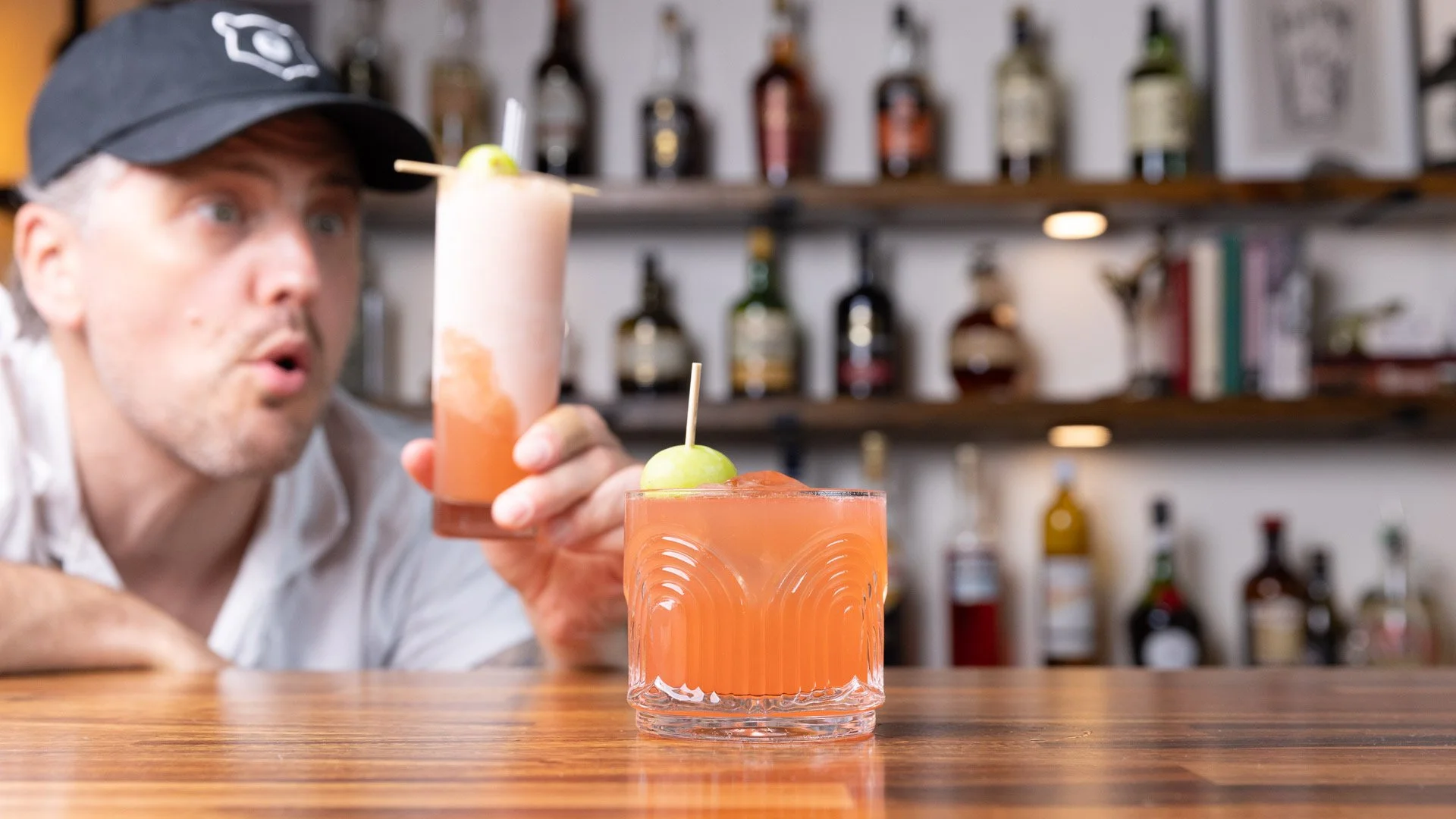 Today's cocktail is the Enzoni! Muddled grapes balance Campari's sharp bitterness and make for an extremely easy-to-drink cocktail. This crowd favorite has become a modern classic. I'll stick with the standard build for the Enzoni, but will change things up in a second drink called the Frozoni - a frozen variation that adds bubbly wine! Hope you enjoy both of these recipes. Cheers!